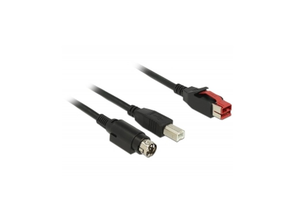 Delock PoweredUSB kabel samec 24 V > USB Typ-B samec + Hosiden Mini-DIN 3 pin samec 2 m pro POS tiskárny a terminály