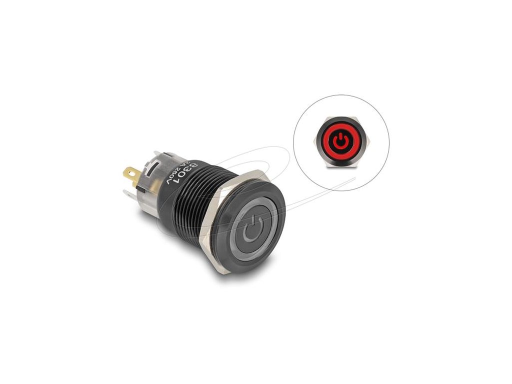 Delock Push Switch pro instalaci černý 19 mm 12 V 5 x pájené připojení LED červený symbol napájení + kroužek