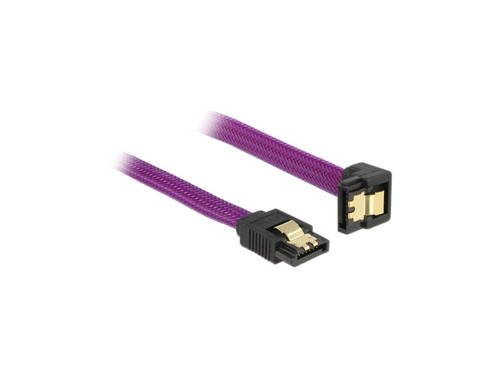 Delock SATA kabel 6 Gb/s, 20 cm otočený dole/rovný, kovové svorky, fialový Premium