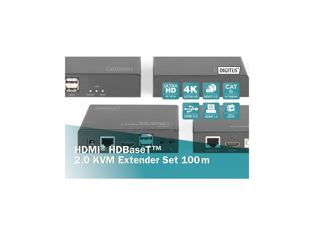 DIGITUS HDMI HDBaseT 2.0 KVM Extender Set, 100 m