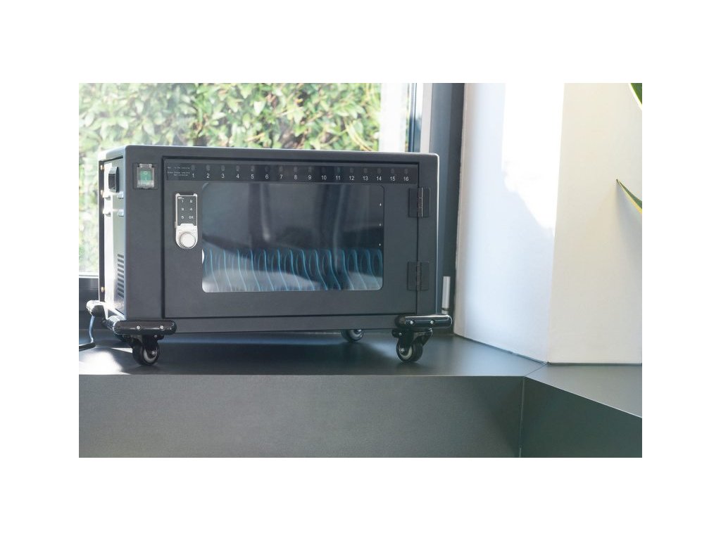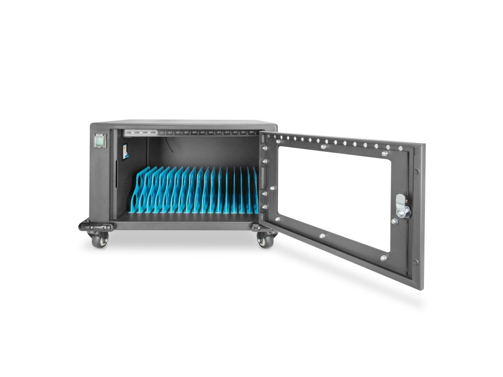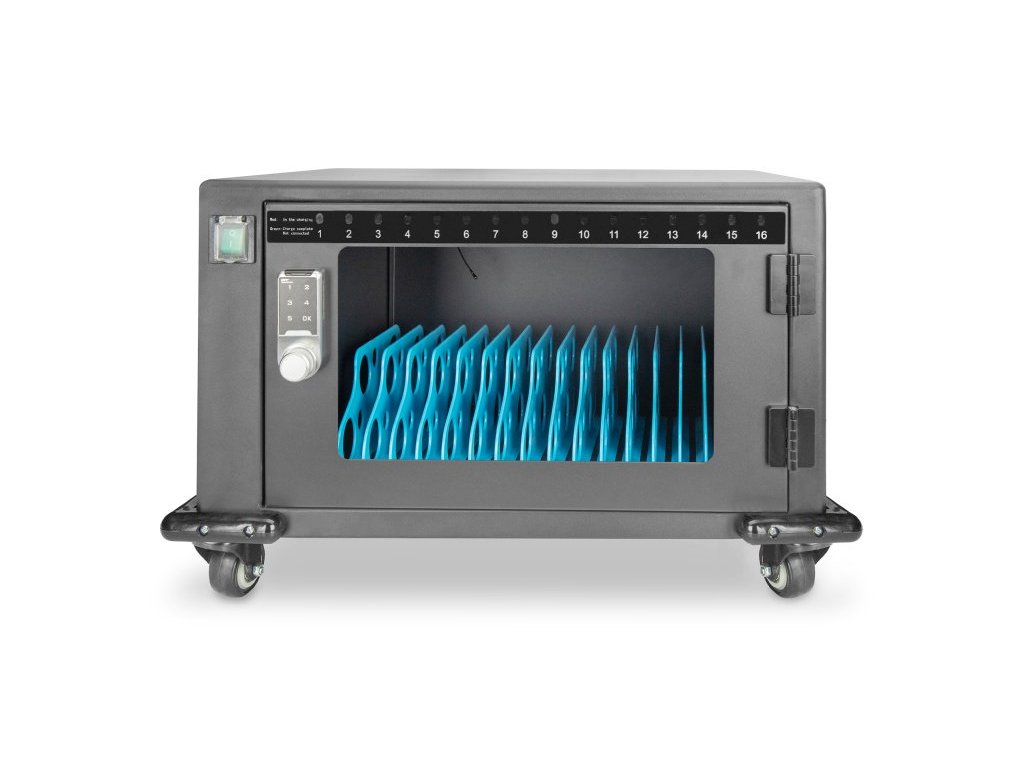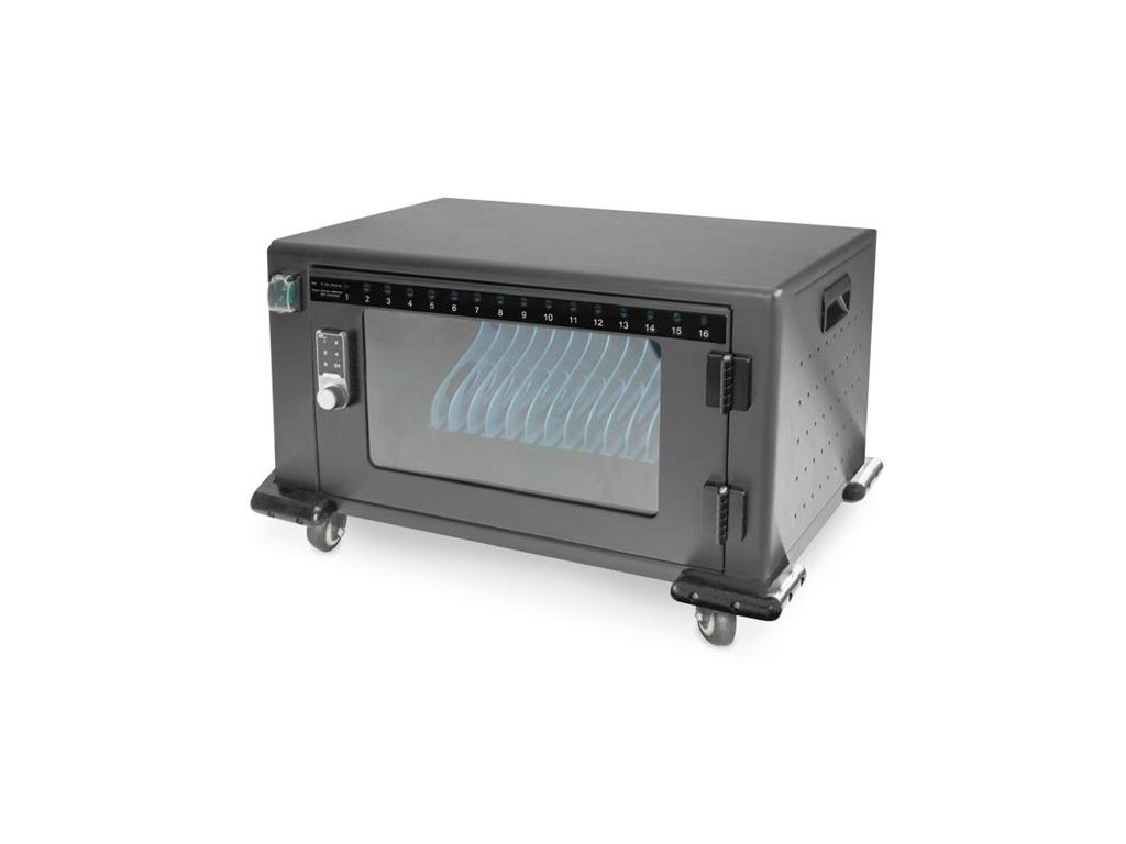 DIGITUS Nabíjecí vozík, 14", USB-C, elektronický PIN zámek,16 nabíjecích základen, ventilátor, 384 x 550 x 375 mm, černá