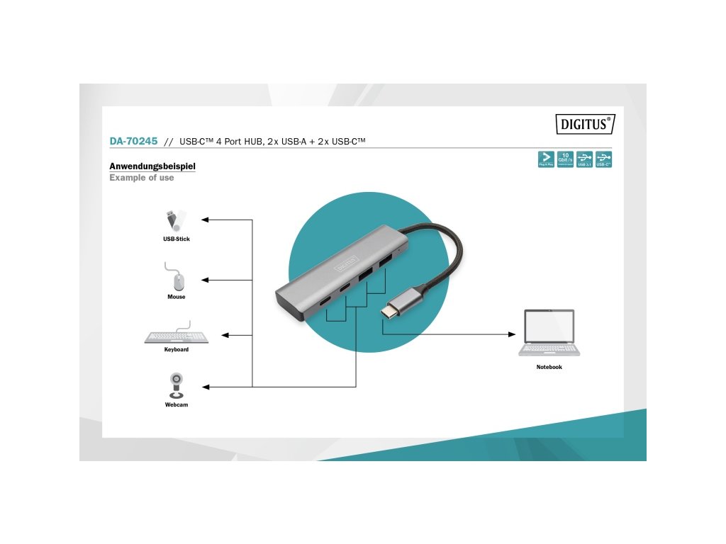 DIGITUS USB-C 4 Port HUB, 2x USB A + 2x USB-C