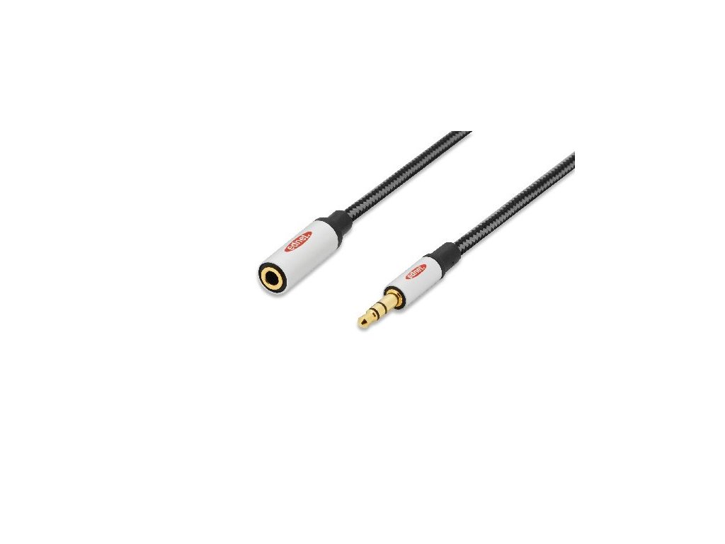 Ednet Audio prodlužovací kabel, stereo 3,5 mm samec/samice, 3,0 m, CCS, stíněný, bavlna, zlato, stříbrná/černá