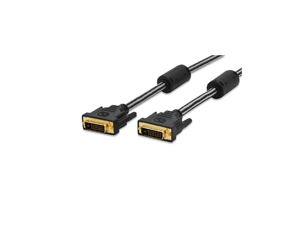 Ednet Připojovací kabel DVI, DVI (24 + 1), 2x ferit samec/samec, 3,0 m, DVI-D Dual Link, bavlna, zlato, černý