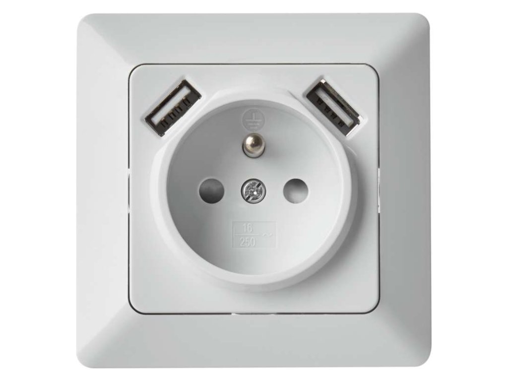 EMOS Zásuvka vestavná A6000.0 1xkulatá 250V/16A+2xUSB 5V/2,1A bílá IP20