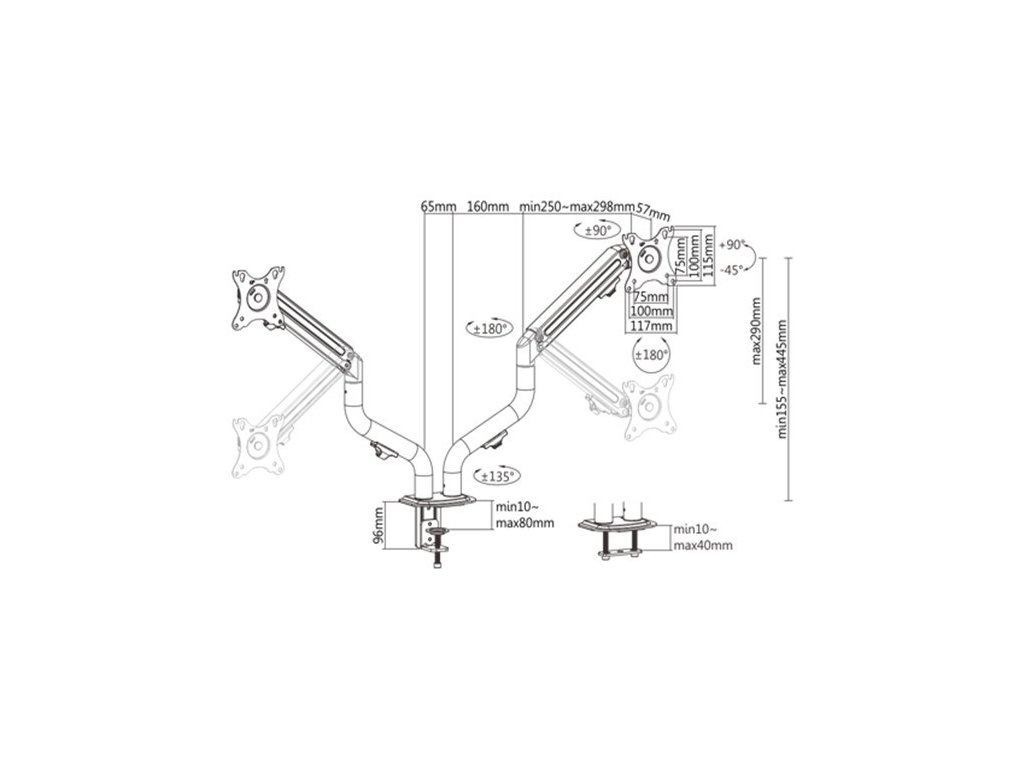 GEMBIRD Držák 2 monitorů na stůl MA-DA2-02, naklápěcí, až do 32” a 8kg, černý