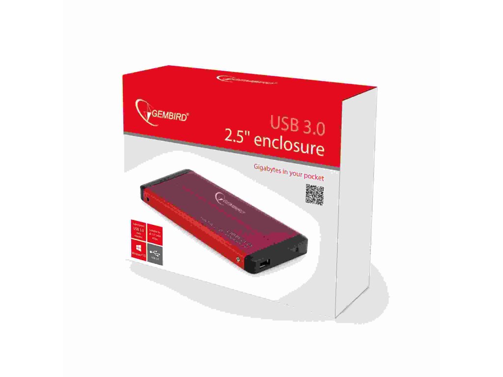 GEMBIRD externí box pro 2.5" zařízení, USB 3.0, SATA, červený