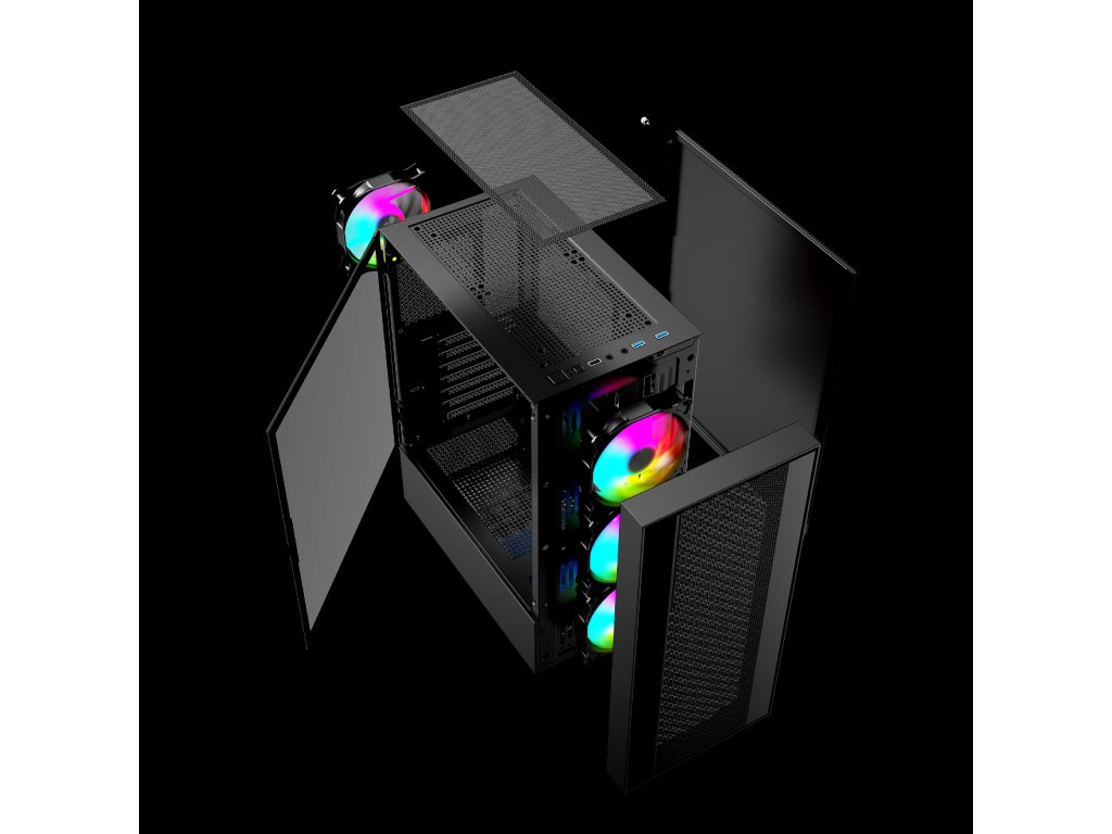 Gembird Fornax 4000 ARGB/Midi Tower/Transpar./Černá