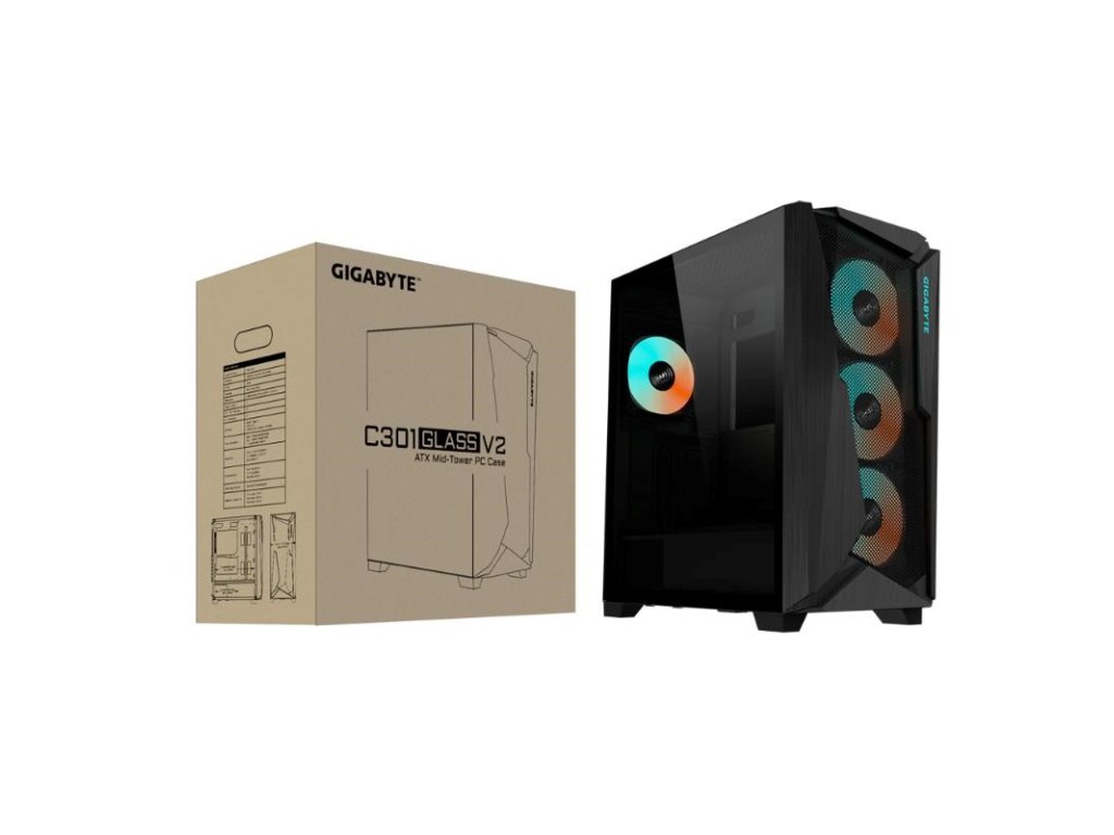 GIGABYTE case GB-C301G V2, Mid Tower, 1xUSB-C 3.2, 2xUSB 3.0, ARGB Hub, 4x 120mm ARGB Fan, černá