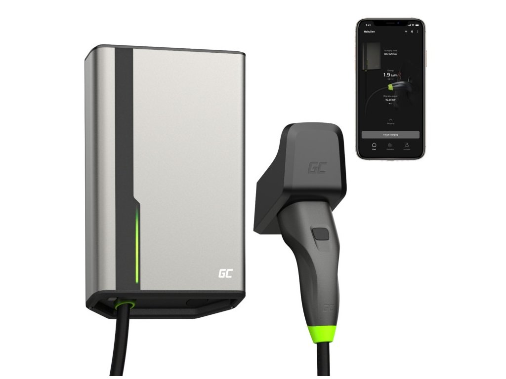 Green Cell GC HabuDen Wallbox 22kW 32A 7,5m kabel typu 2 Smart EV nabíjecí stanice s aplikací GC Bluetooth WiFi