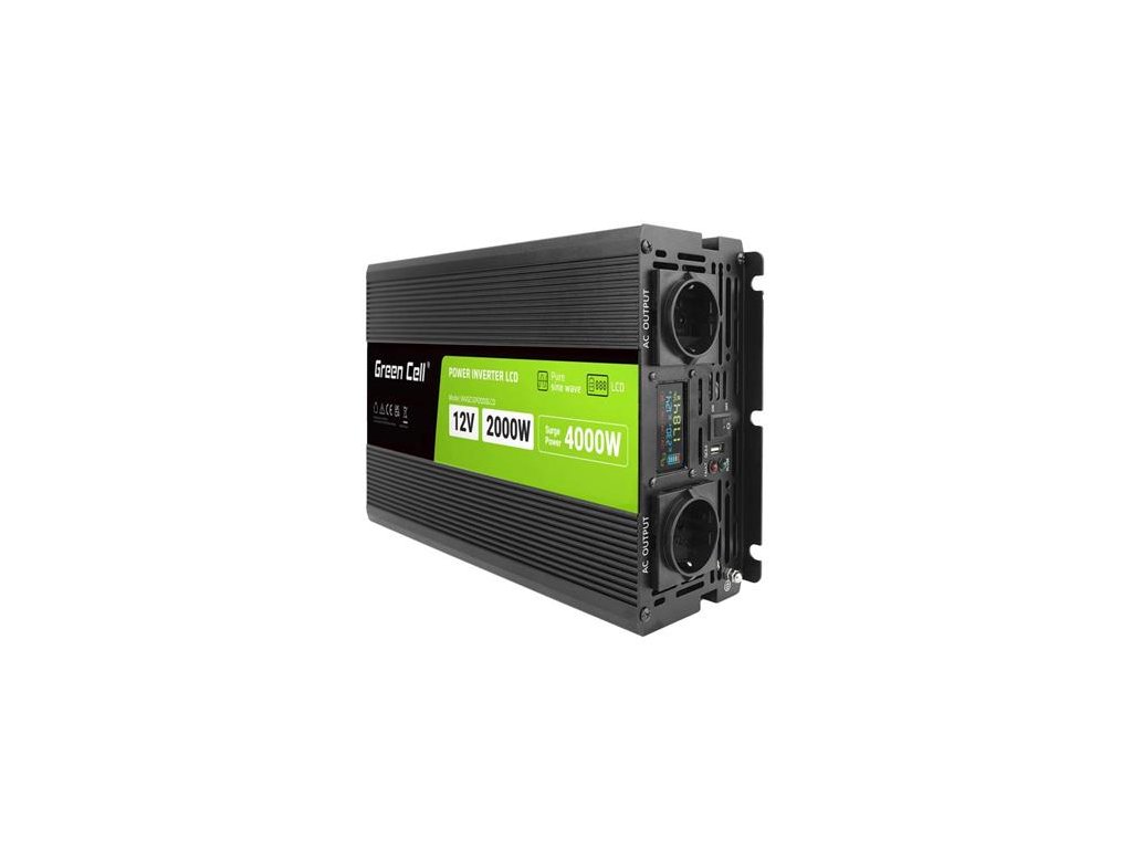 Green Cell PowerInverter LCD 12 volt 2000W/40000W car inverter with display - pure sine wave