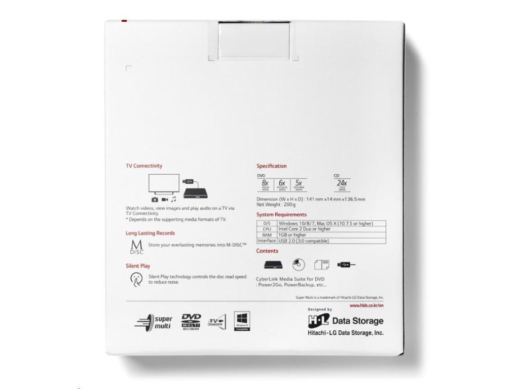 HITACHI LG - externí mechanika DVD-W/CD-RW/DVD±R/±RW/RAM GP60NW60, Slim, White, box+SW