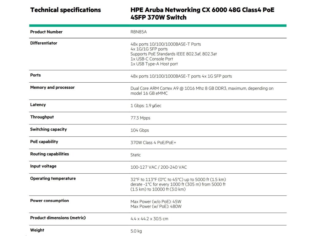 HPE Aruba Networking CX 6000 48G 4SFP Switch R8N86A
