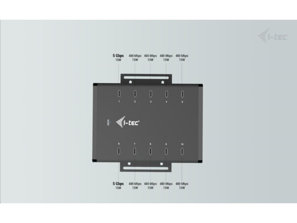 i-tec USB-C/USB-A Metal Charging + data HUB, 15W per port, 10x USB-C