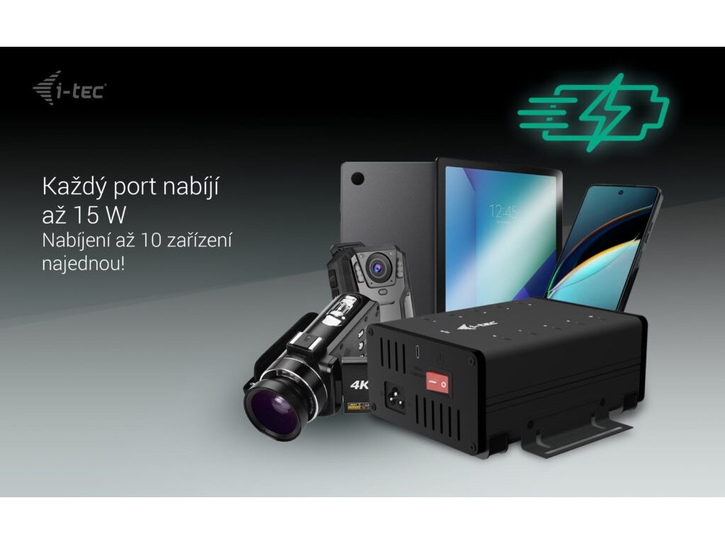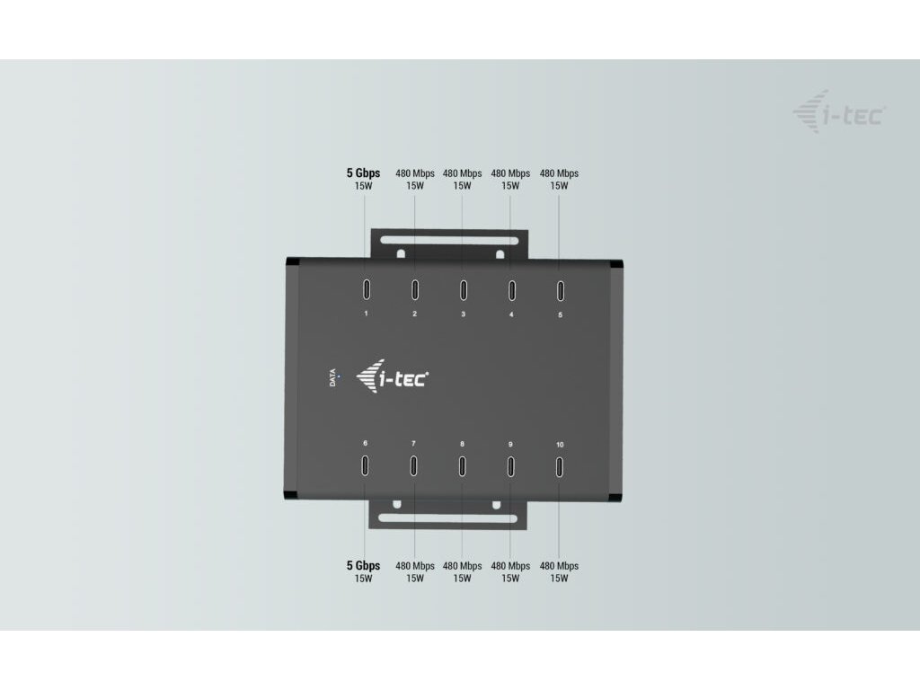 i-tec USB-C/USB-A Metal Charging + Data HUB, 15W/port, 10x USB-C, 180W