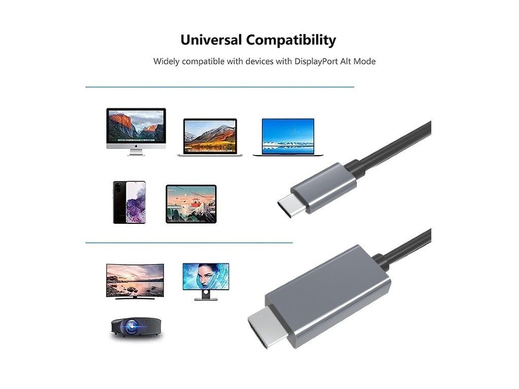 Kabel PremiumCord USB-C na HDMI 1,8m rozlišení obrazu 4K*2K@60Hz