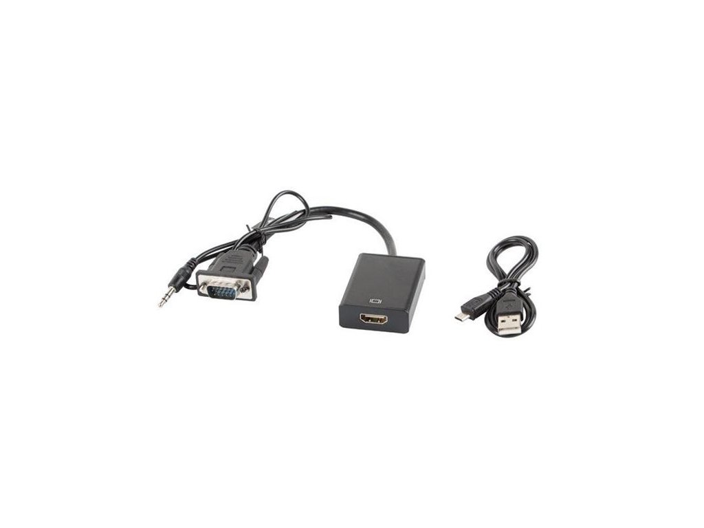 LANBERG VGA(M)+MINIJACK 3,5MM(M)->HDMI(F) ADAPTÉROVÝ KABEL 20CM ČERNÝ
