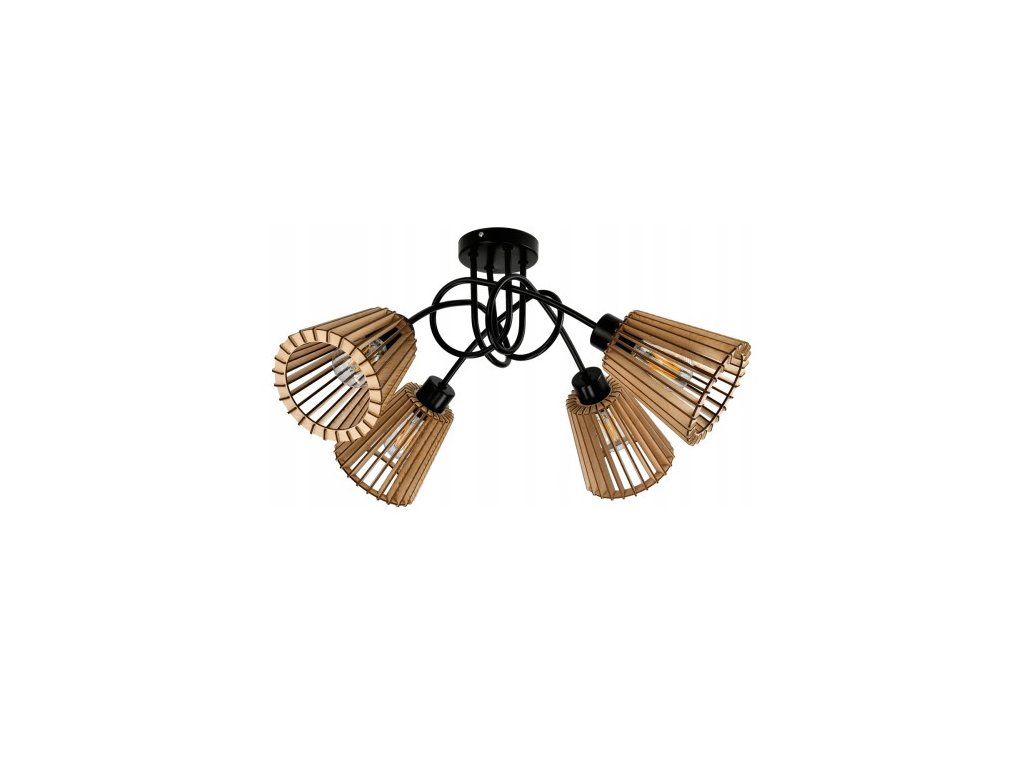 LED LOFT lampa curly 4xe27 dřevěný kužel