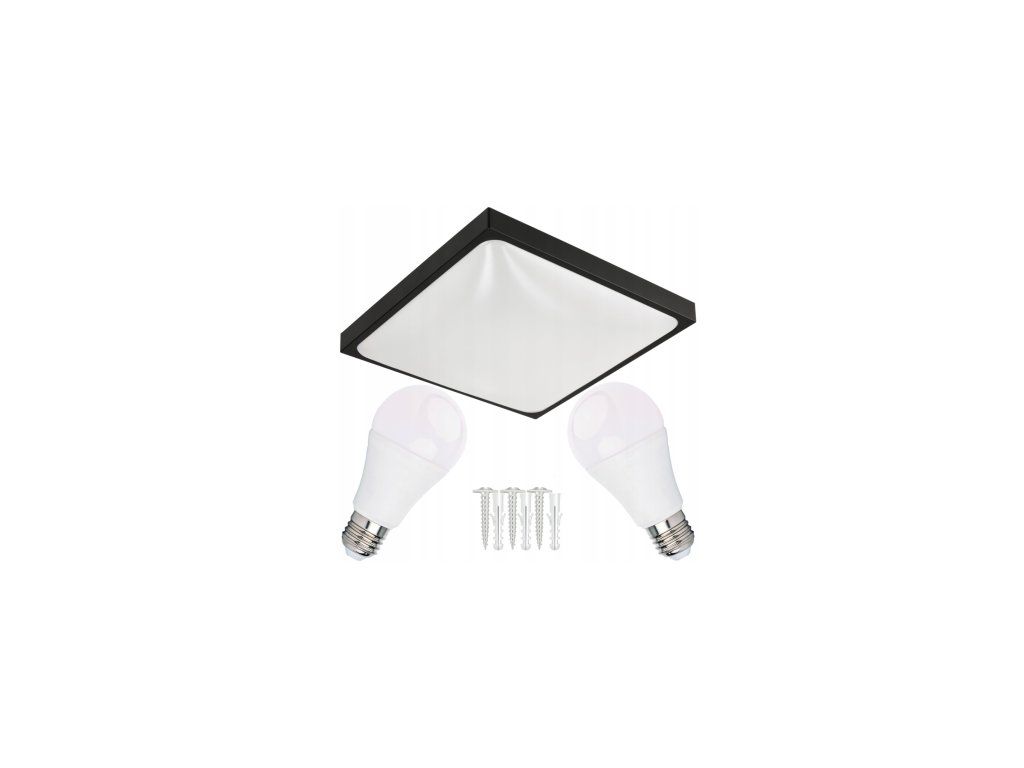 LED stropní svítidlo 2xE27 čtvercové černé s LED žárovkami - sada