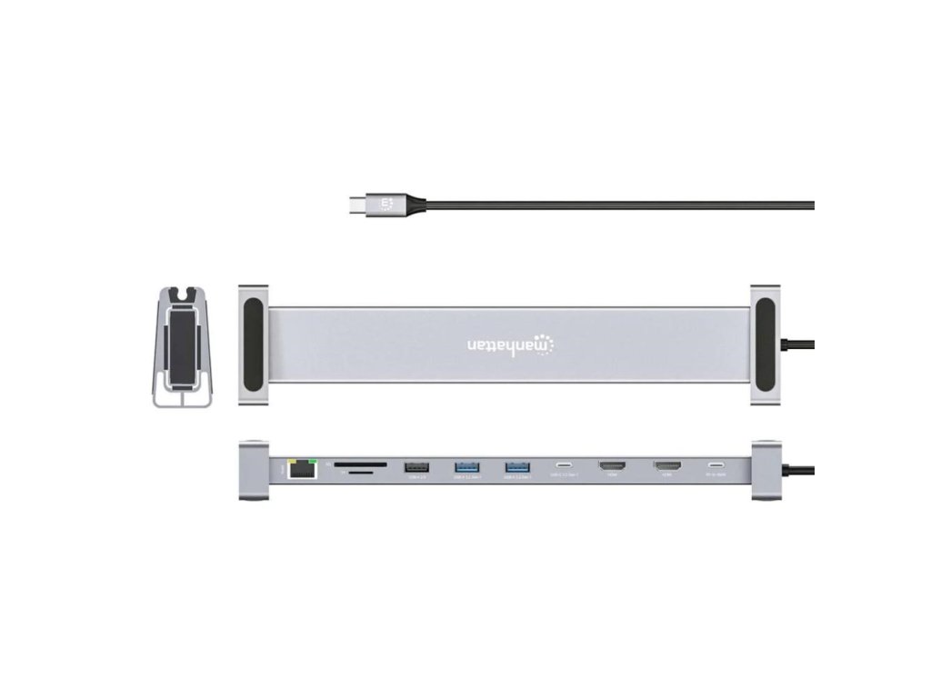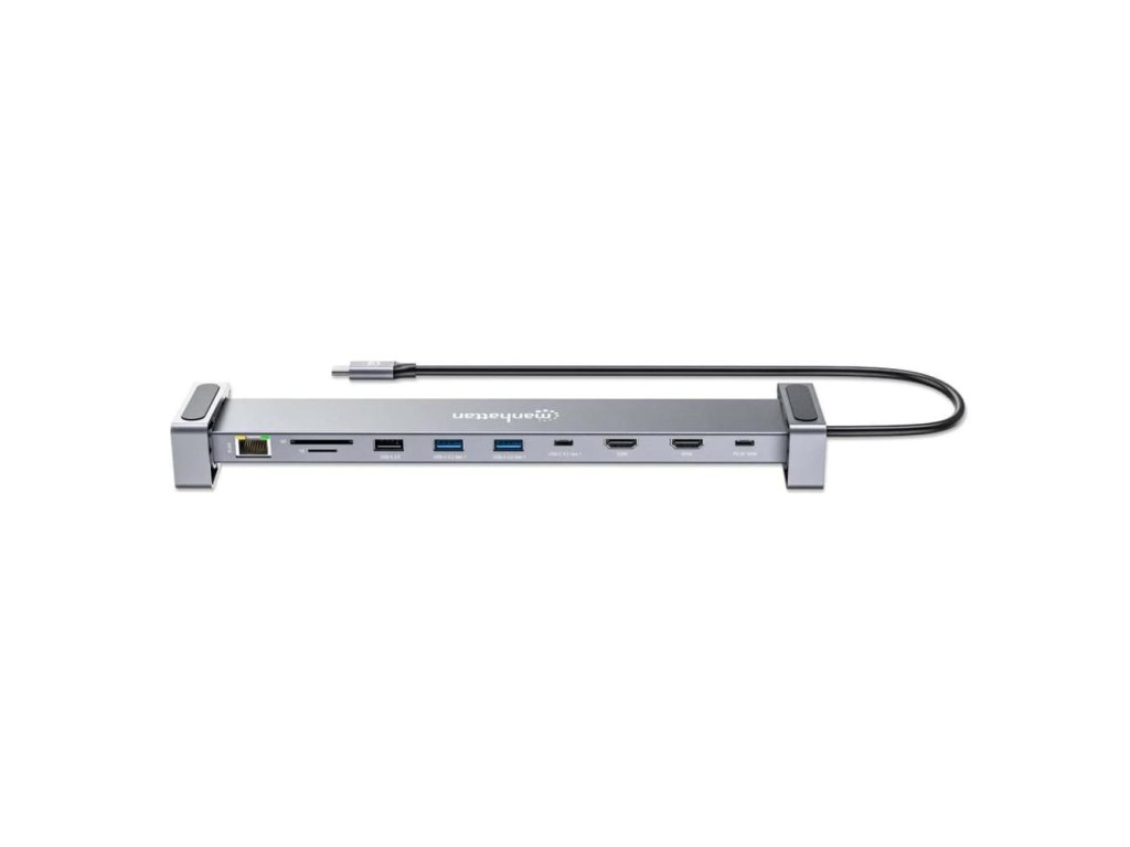 MANHATTAN Dokovací stanice USB-C 10v1, 2xHDMI, 2xUSB-C, 3xUSB, 1xRJ45, čtečka SD karet, šedá