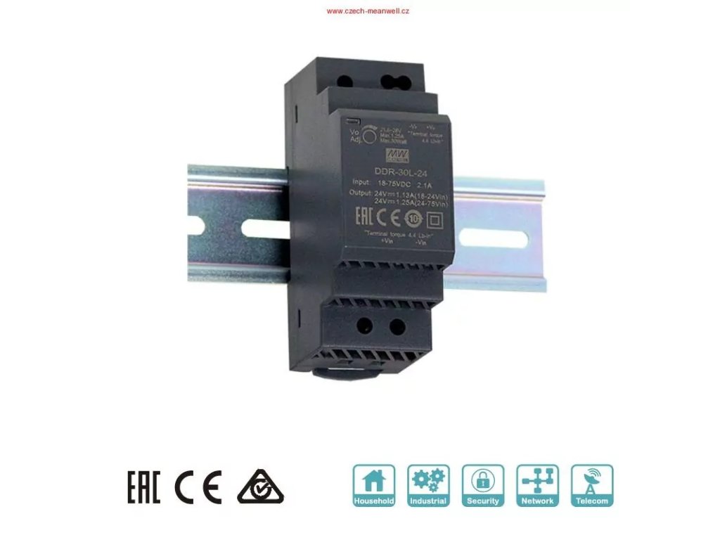 MEANWELL - DDR-30L-12 Měnič DC/DC na DIN lištu