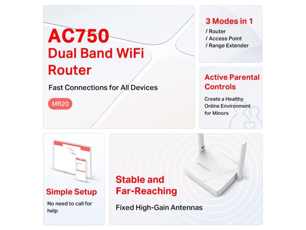 Mercusys MR20 AC750 Wireless Dual Band Router