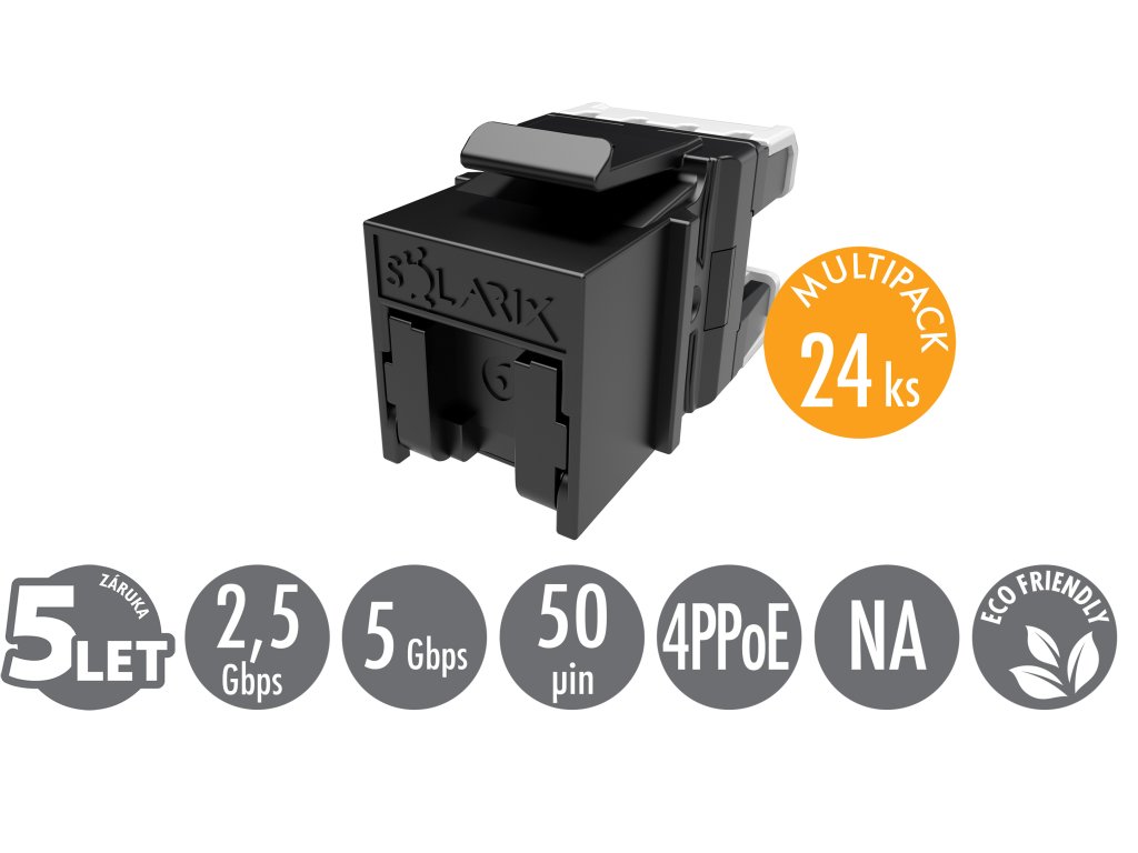 MULTIPACK 24 ks - rychlozařezávací keystone Solarix CAT6 UTP SXKJ-6-UTP-BK-NA Comp. Level a 4PPoE