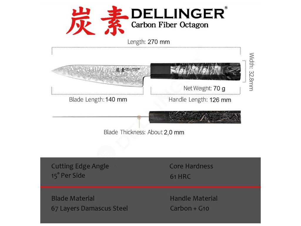 Nůž Dellinger Malý loupací Utility 140 mm Carbon Fiber Octagon®