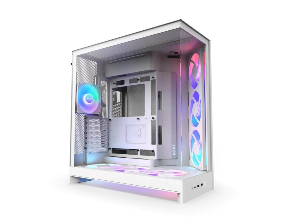 NZXT skříň H9 Flow ARGB+ dvoukomorová ATX / 6xRGB 140 mm / 1x 120mm fan / prosklená / controller / bílá