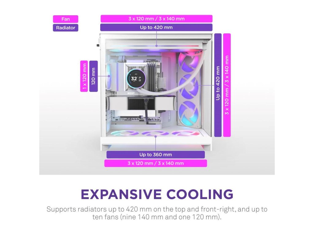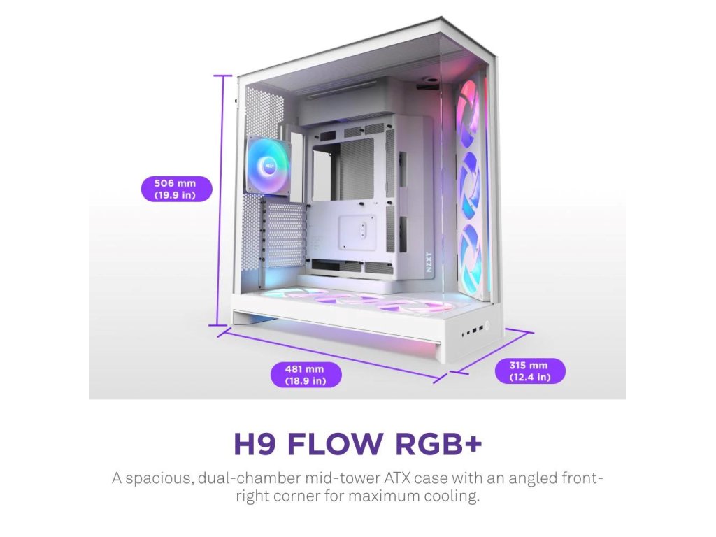 NZXT skříň H9 Flow ARGB dvoukomorová ATX / 3xRGB 140 mm / 1x 120mm fan / prosklená / bílá