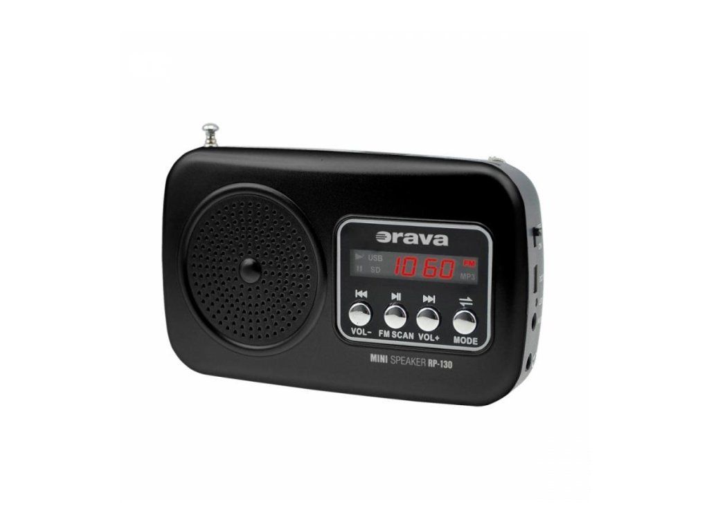 Orava RP 130 přenosný rádiopřijímač, SD Karta, výstup na sluchátka, LED displej, FM rádio, USB, AUX vstup, černý