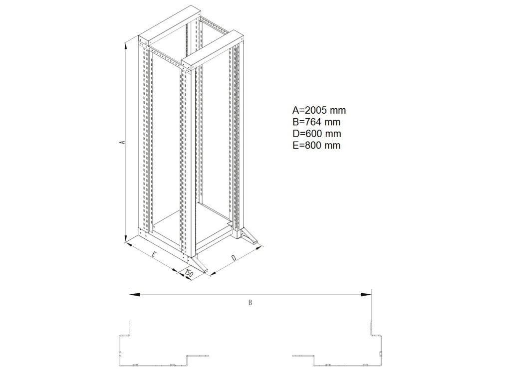 Otevřený 19'' stojan RSX 42U dvoudílný 800hl.