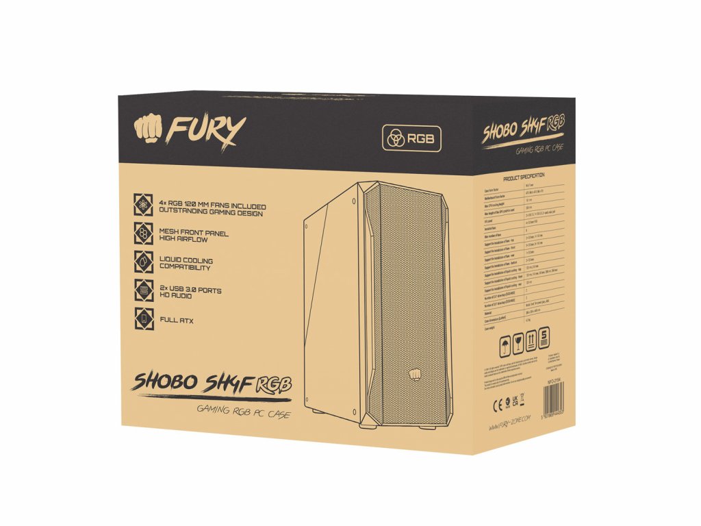 PC skříň Fury Shobo SH4F RGB - inteligentní počítačová skříň s účinným chlazením a RGB podsvícením. Skříň Shobo SH4F RGB je kompatibilní se základními deskami ATX a systémy vodního chlazení (AIO 360/280/240/140/120), je vybavena až 4 ventilátory RGB, přední síťovinou a ochranou proti prachu.