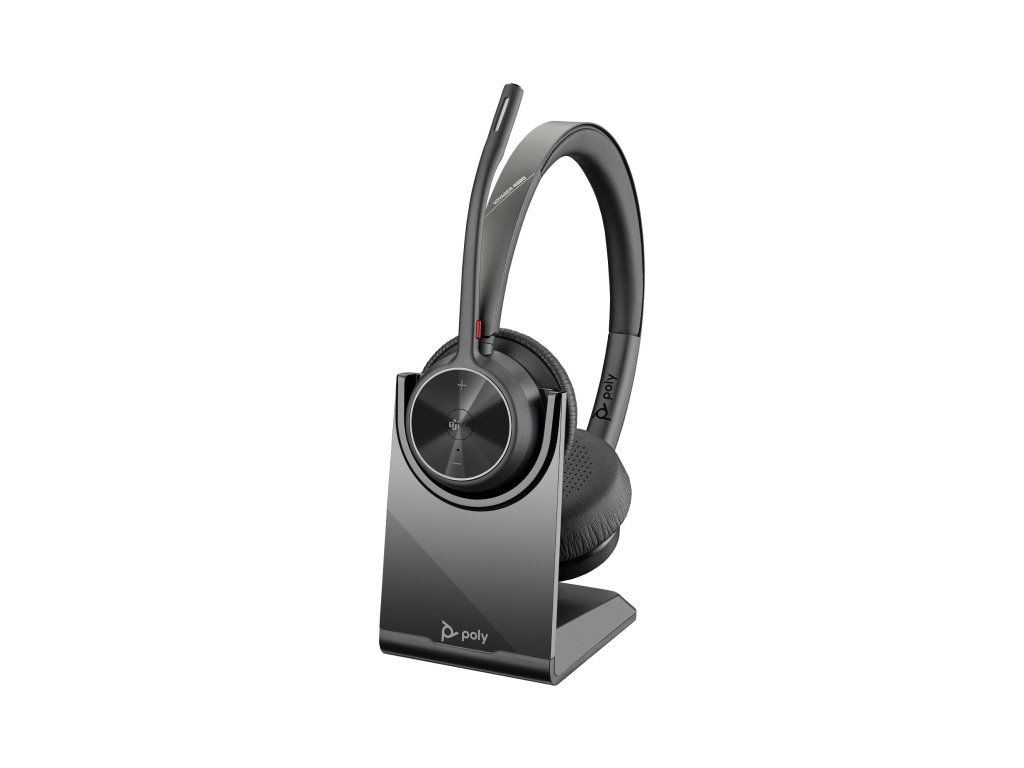 Poly Voyager 4320 MS Teams bezdrátová náhlavní souprava, BT700 USB-C adaptér, stereo, nabíjecí stojánek