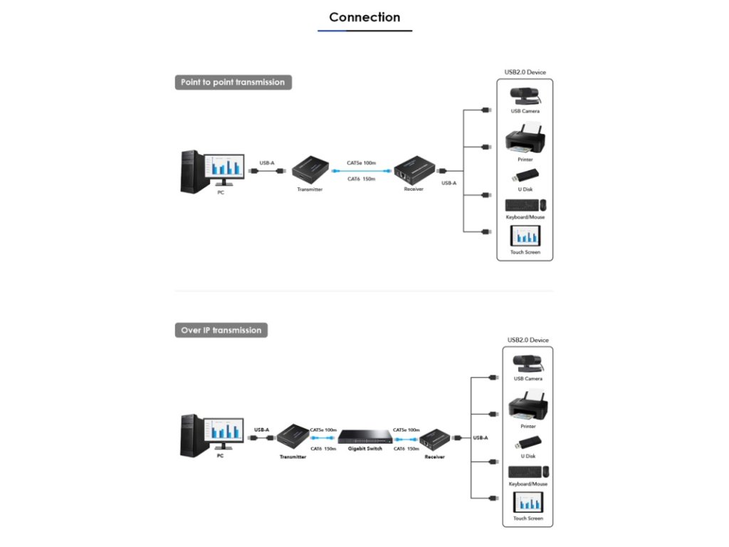 PremiumCord 4-port USB 2.0 extender po Cat5/Cat5e/Cat6 do 150m