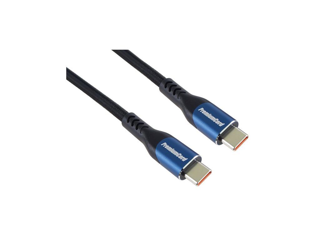 PremiumCord USB-C kabel ( USB 3.2 GEN 2x2, 5A, 100W, 20Gbit/s ) 2m, bavlněný oplet, černý
