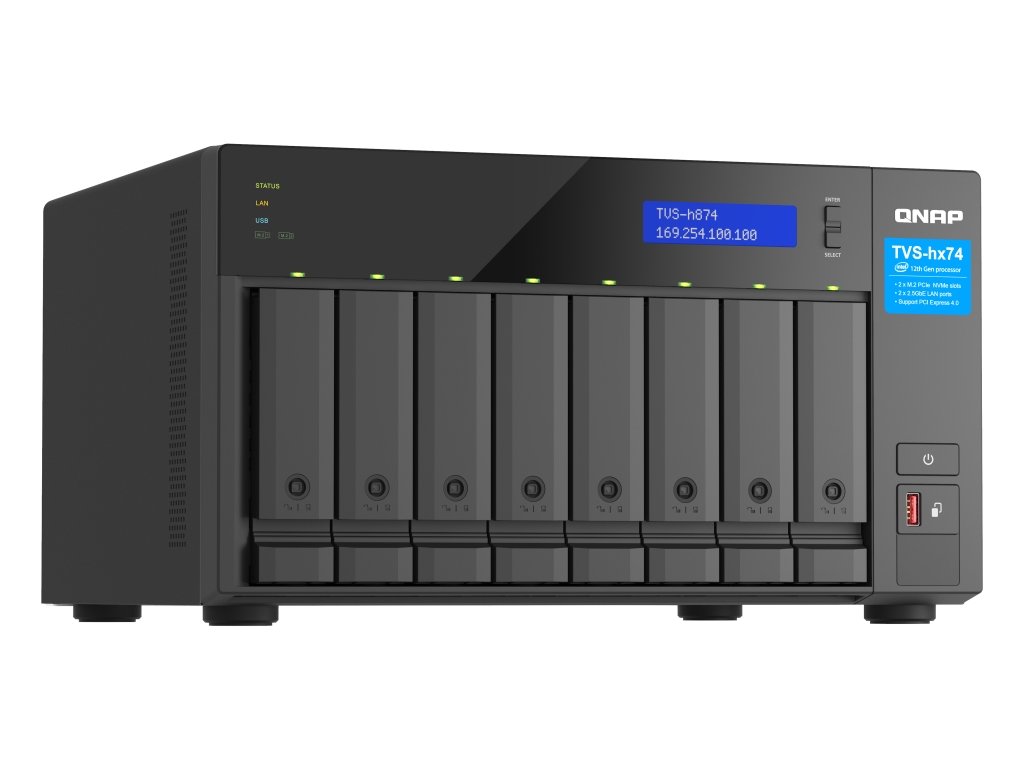 S procesorem Intel Core, který podporují operační systém QuTS hero na bázi ZFS, zajišťuje SMB NAS TVS-h874 integritu dat a podporuje deduplikaci a kompresi dat na úrovni bloků, téměř neomezené snímky, SnapSync v reálném čase a optimalizaci SSD. Ať už jde o souborové servery s kritickým významem, virtualizační servery, kolaborativní úpravy videí nebo efektivní aplikace pro zálohování a obnovu dat, zařízení TVS-h874 představuje ideální řešení NAS. Vysoce výkonný TVS-h874 poskytuje rozšiřitelnost PCIe Gen 4 (až dvojnásobná přenosová rychlost oproti Gen 3), M.2 NVMe SSD cache a připojení 2,5GbE pro vysokorychlostní virtualizační síťová prostředí.