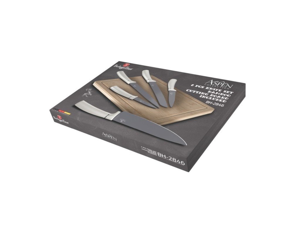 Sada nožů Berlingerhaus s nepřilnavým povrchem a prkénkem 6 ks Aspen Collection