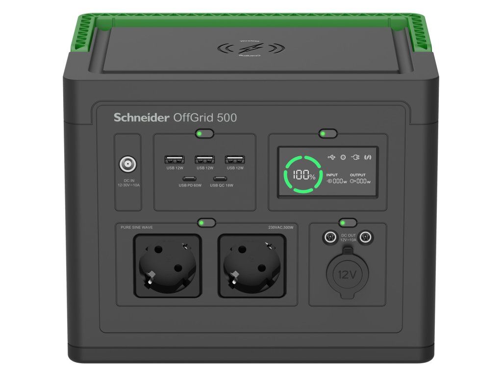 Schneider OffGrid Portable Power Station 500, 517Wh Lithium-ion, 2 Schuko, Sinewave