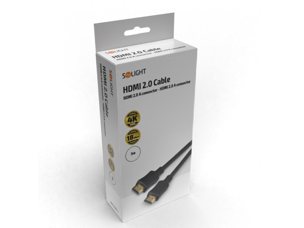 Solight HDMI kabel s Ethernetem, HDMI 2.0 A konektor - HDMI 2.0 A konektor, blistr, 3m