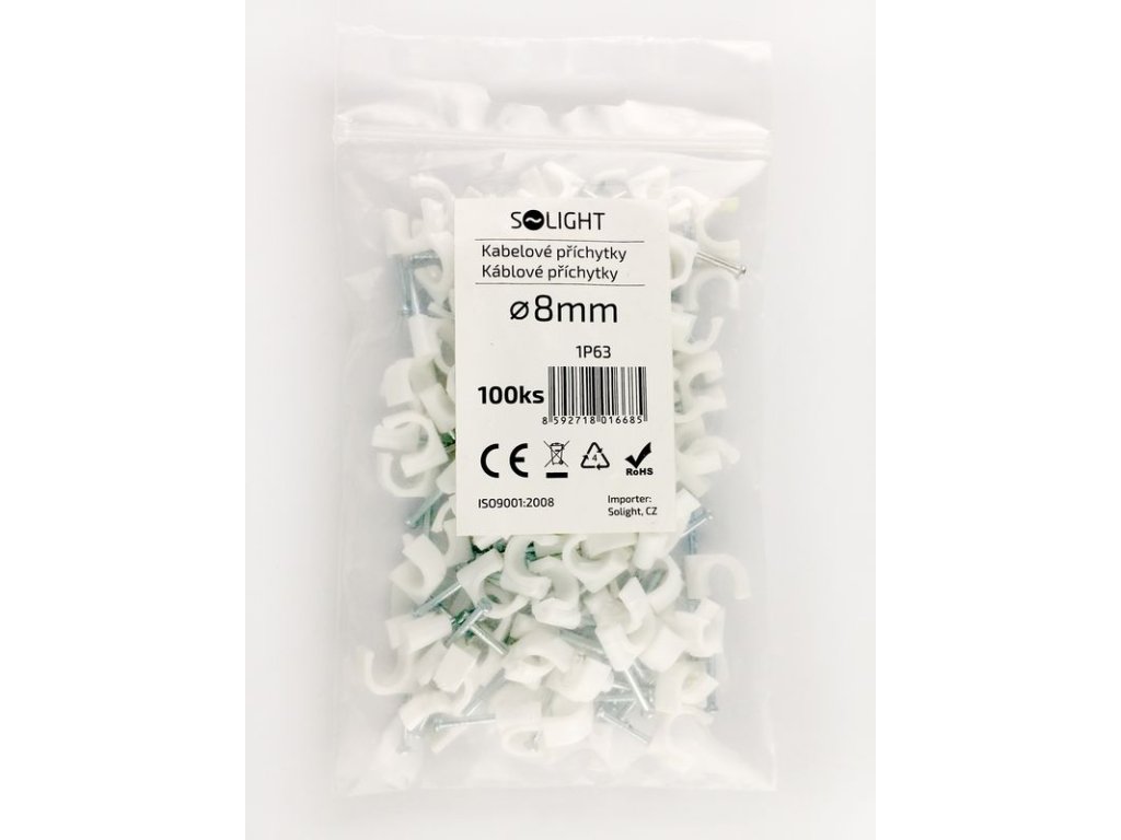 Solight kabelové příchytky, průměr 8mm, bílé, 100ks