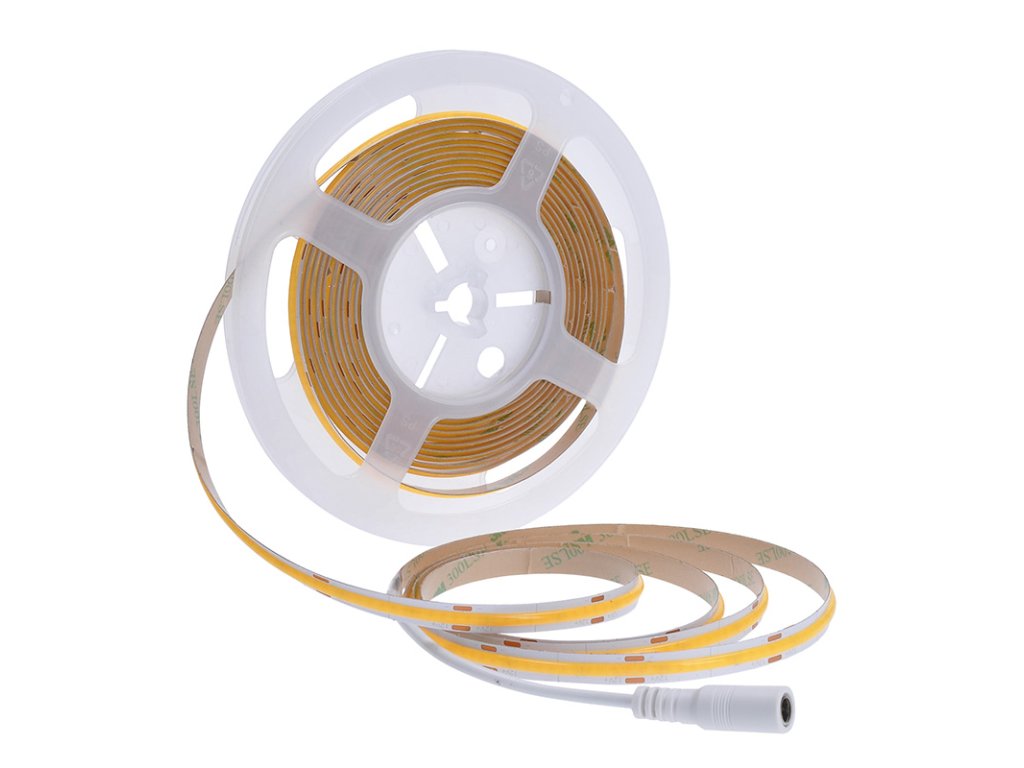 Solight LED COB pásek, sada s adaptérem, vypínač, 5m, 8W/m, 800lm/m, teplá bílá