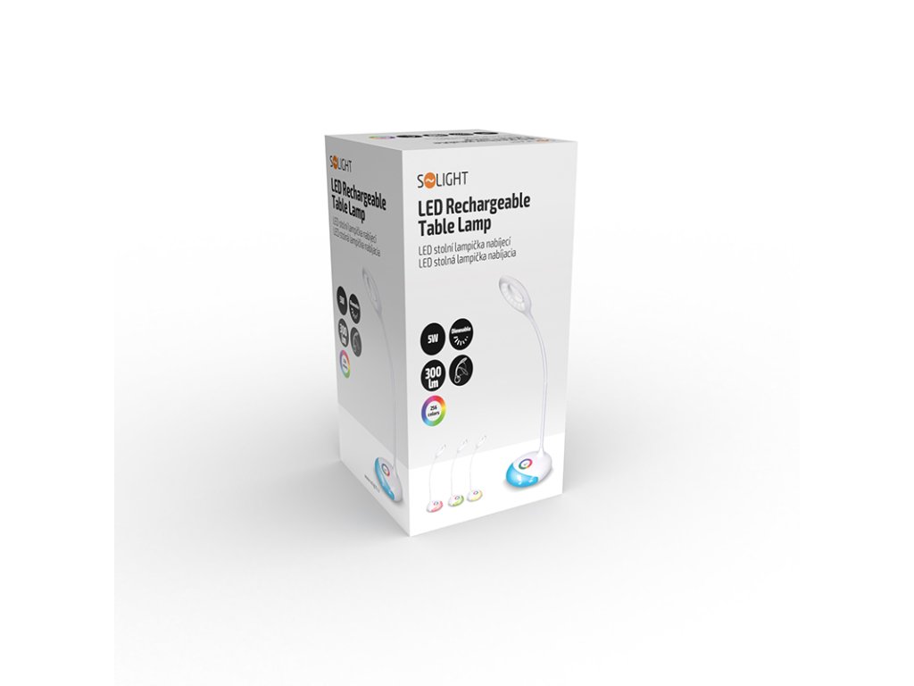 Solight LED stolní lampička nabíjecí, 5W, RGB podsvícení, stmívatelná, USB napájení