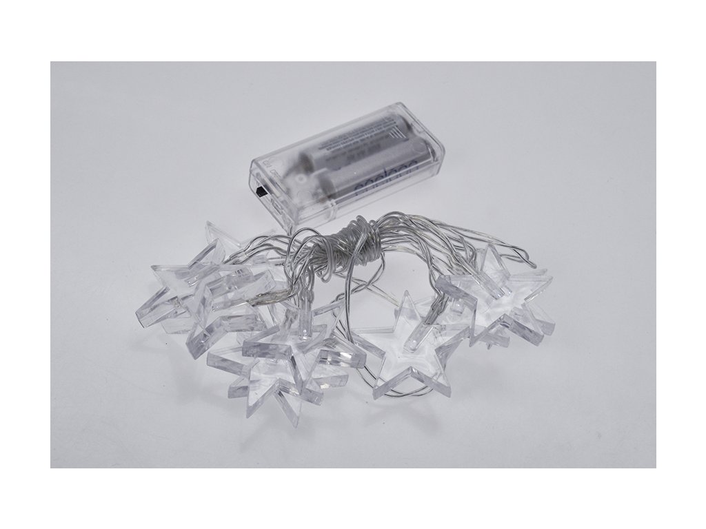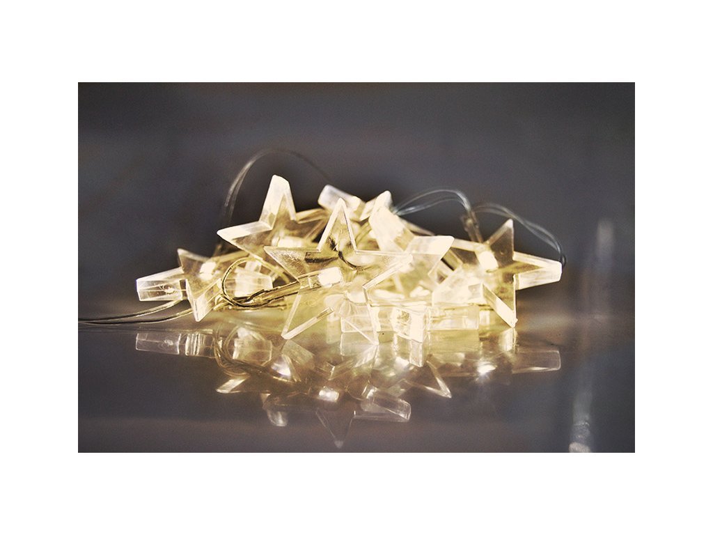 Solight LED vánoční řetěz, hvězdy, 1,5m, 10 LED, 2 x AA, žluté světlo