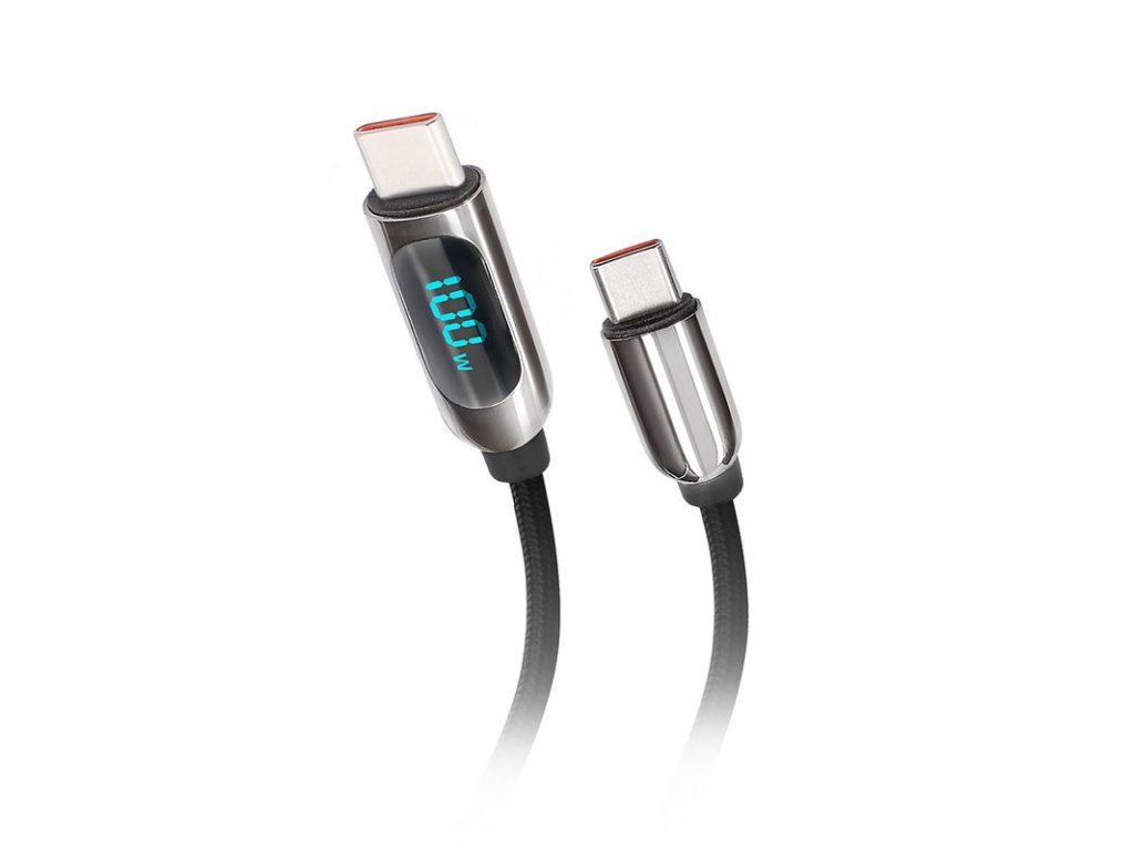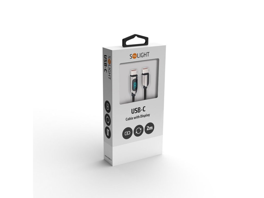 Solight USB-C kabel s displejem, USB-C konektor - USB-C konektor, 100W, 2m