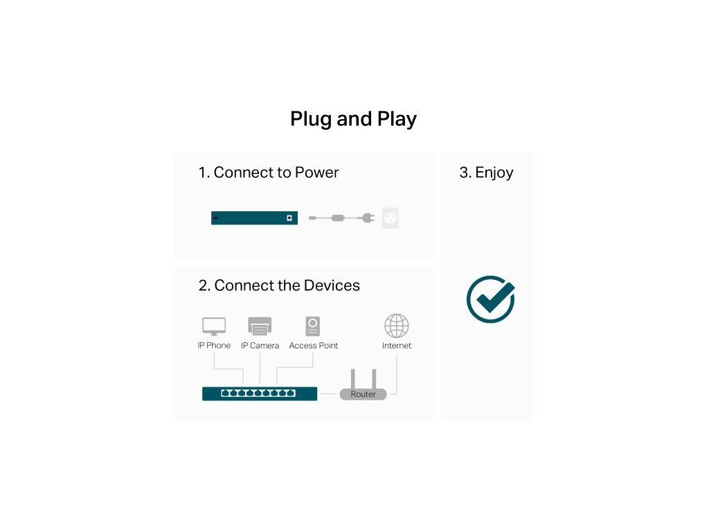 Mercusys MS110CMP 8portový 10/100 Mb/s + 2portový gigabitový stolní přepínač s 8 porty PoE+