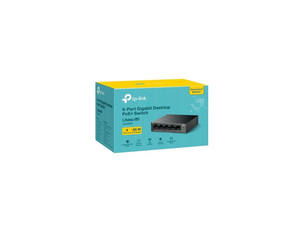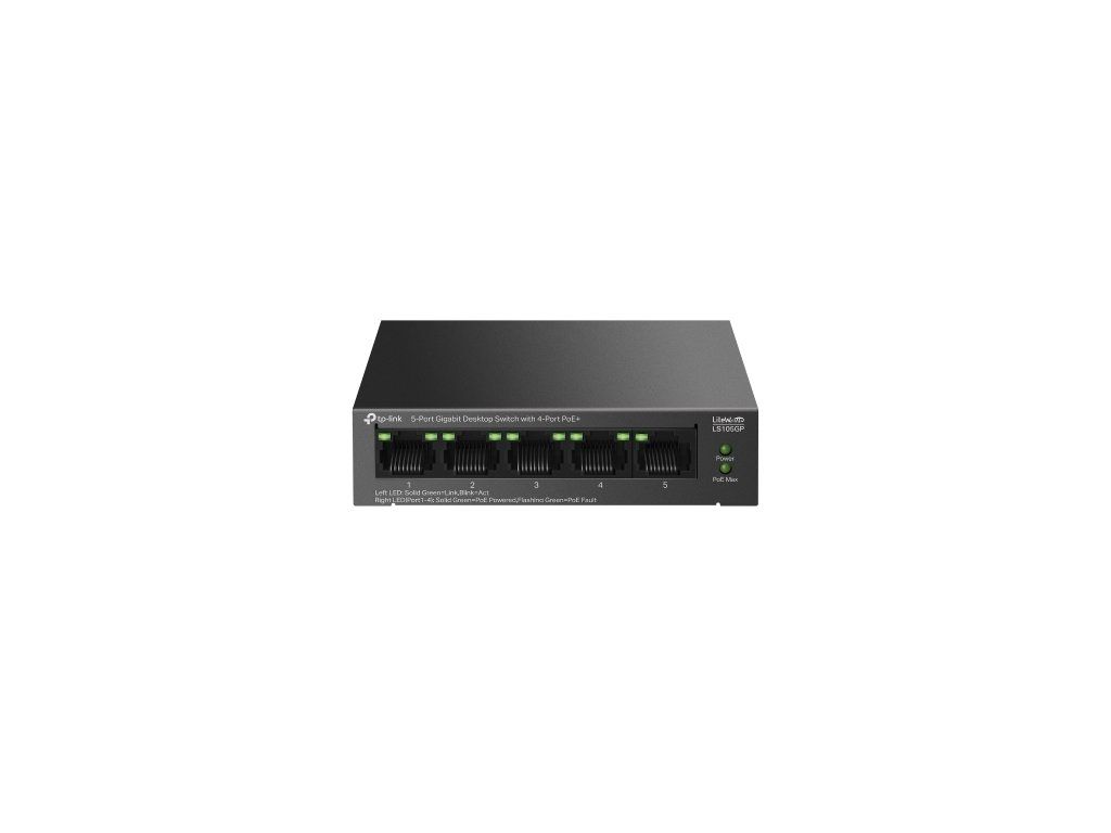 Switch TP-Link LS105GP 1x GLAN, 4x GLAN s PoE+, 65W