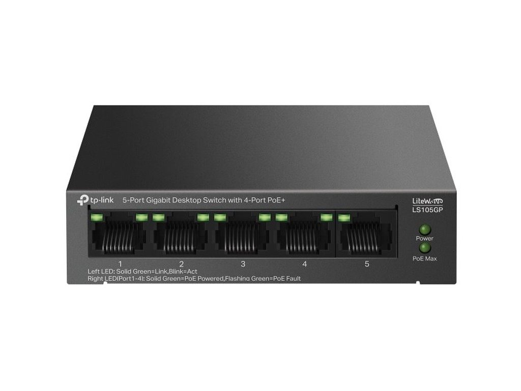 TP-Link LS105GP Switch 1x GLAN, 4x GLAN s PoE+, 65W
