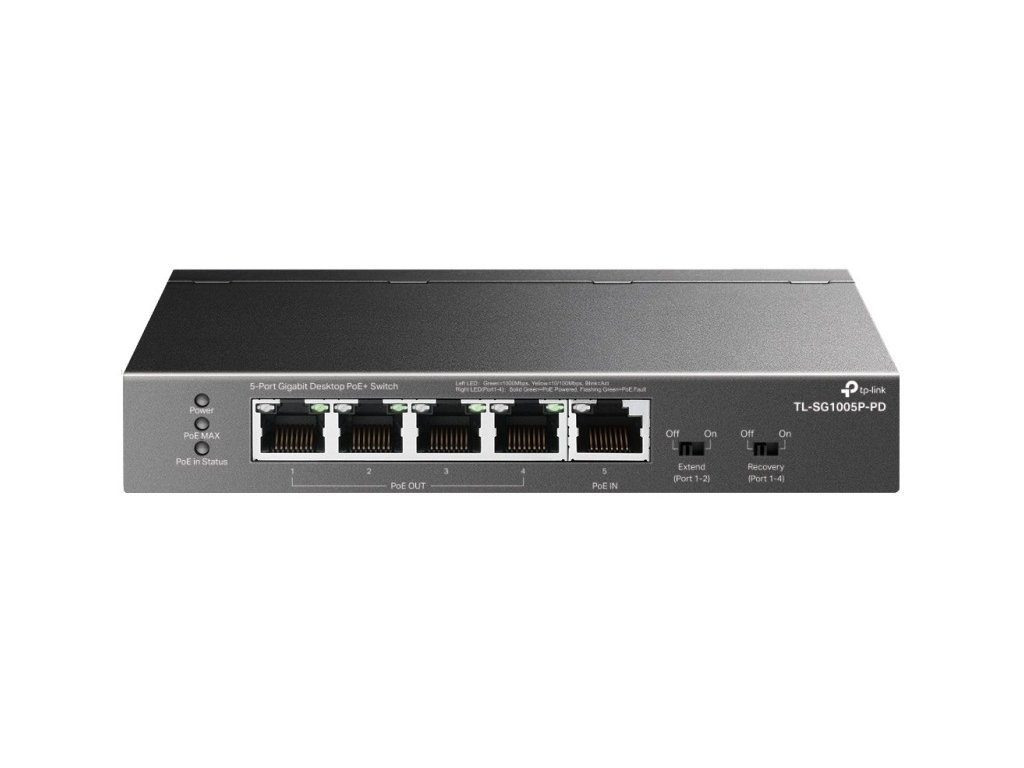 TP-Link TL-SG1005P-PD Switch 1x GLAN s PoE-in, 4x GLAN s PoE+ ( PoE extender switch až 250M _napájení 802.3bt)