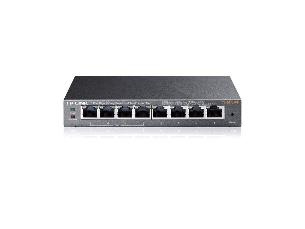 TP-Link TL-SG108PE PoE switch, 8x GLAN/4x PoE, 802.3af, 55W, 10/100/1000Mbps